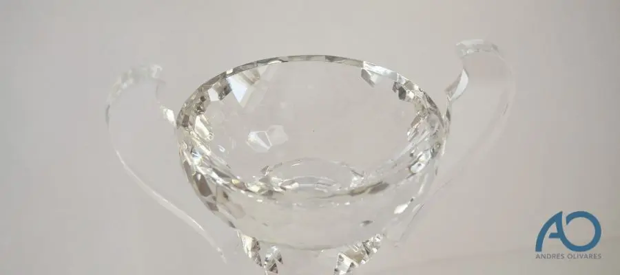 - Cristal óptico: es el más utilizado para trofeos de alta gama. Su principal característica es que carece de impurezas y burbujas, ofreciendo una transparencia absoluta y una capacidad de refractar la luz que crea destellos brillantes.